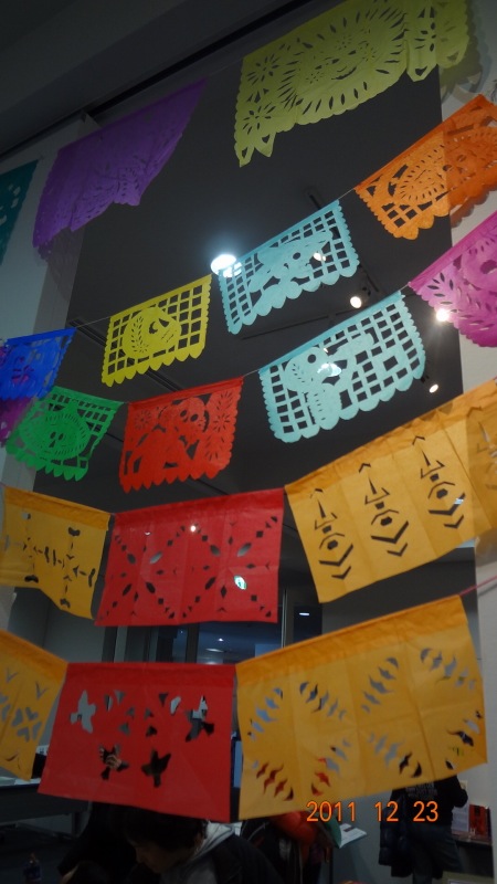 前号のニュースレターで、日本ラテンアメリカ子どもと本の会(CLIJAL)について、結成の経緯やこれまでの歩みをご紹介しました。昨年(2011年)12月に鶴見で開催した図書展「開いてよう!見てみよう!子どもの本でラテンアメリカめぐり展」は、私たちにとってはじめての大きなイベントでしたが、今回は、その会場をいろどり、脇役として図書展をもりあげたパペルピカドpapel picadoについて、すこしお話したいと思います。